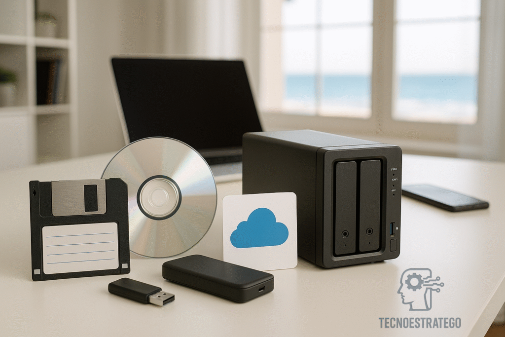 2 medios de almacenamiento diferentes: Almacena estas copias en dos tipos de soportes distintos, como un disco externo y un NAS, o un disco externo y la nube.